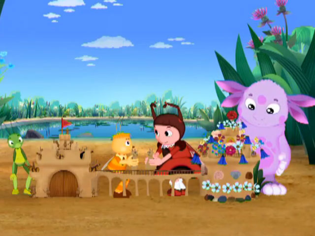 Мила и Пчеленок решили вместе сделать замок из песка, но ребята поссорились из-за того, где должен стоять их прекрасных замок. Лунтик помирил друзей.